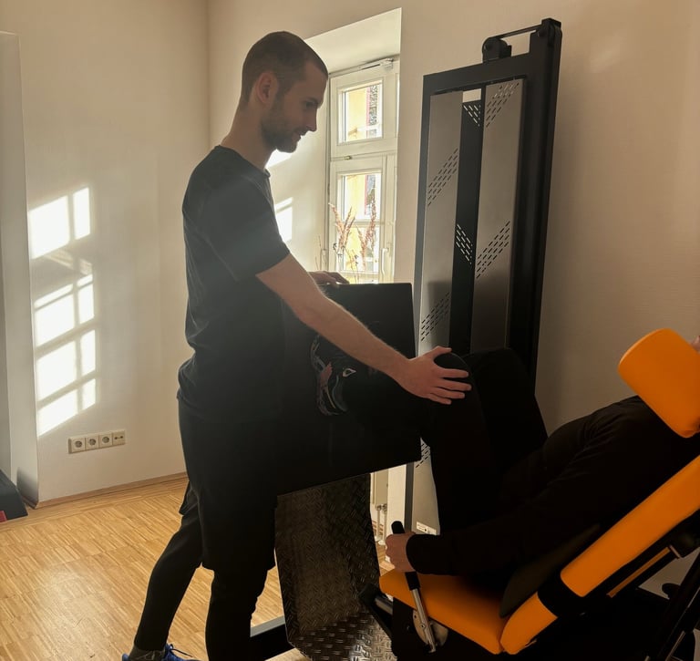 Eine Therapie mit dem Fokus ausschließlich auf Muskelaufbau und Förderung der Gelenkfunktion und des ganzen Bewegungsapparates. Wie der Name schon sagt - mit Hilfe von Geräten, aber auch in Form von funktionellen Übungen.